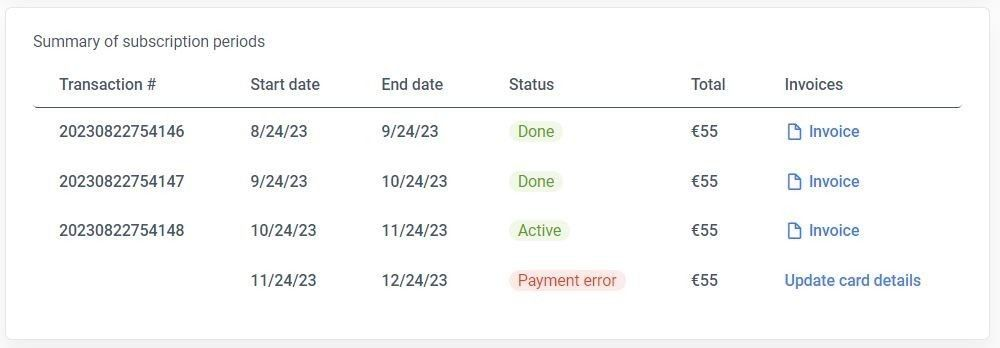 Payment Error: the next subscription period has a payment issue