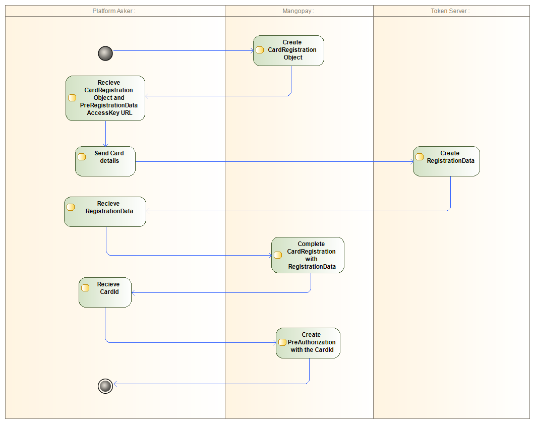 For card payments on Mangopay, the workflow follows the same process as outlined for Stripe. For additional details, refer to the section "Stripe - Credit Card Payment."