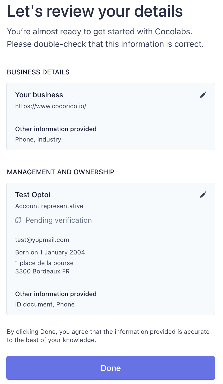 Stripe KYC/KYB process