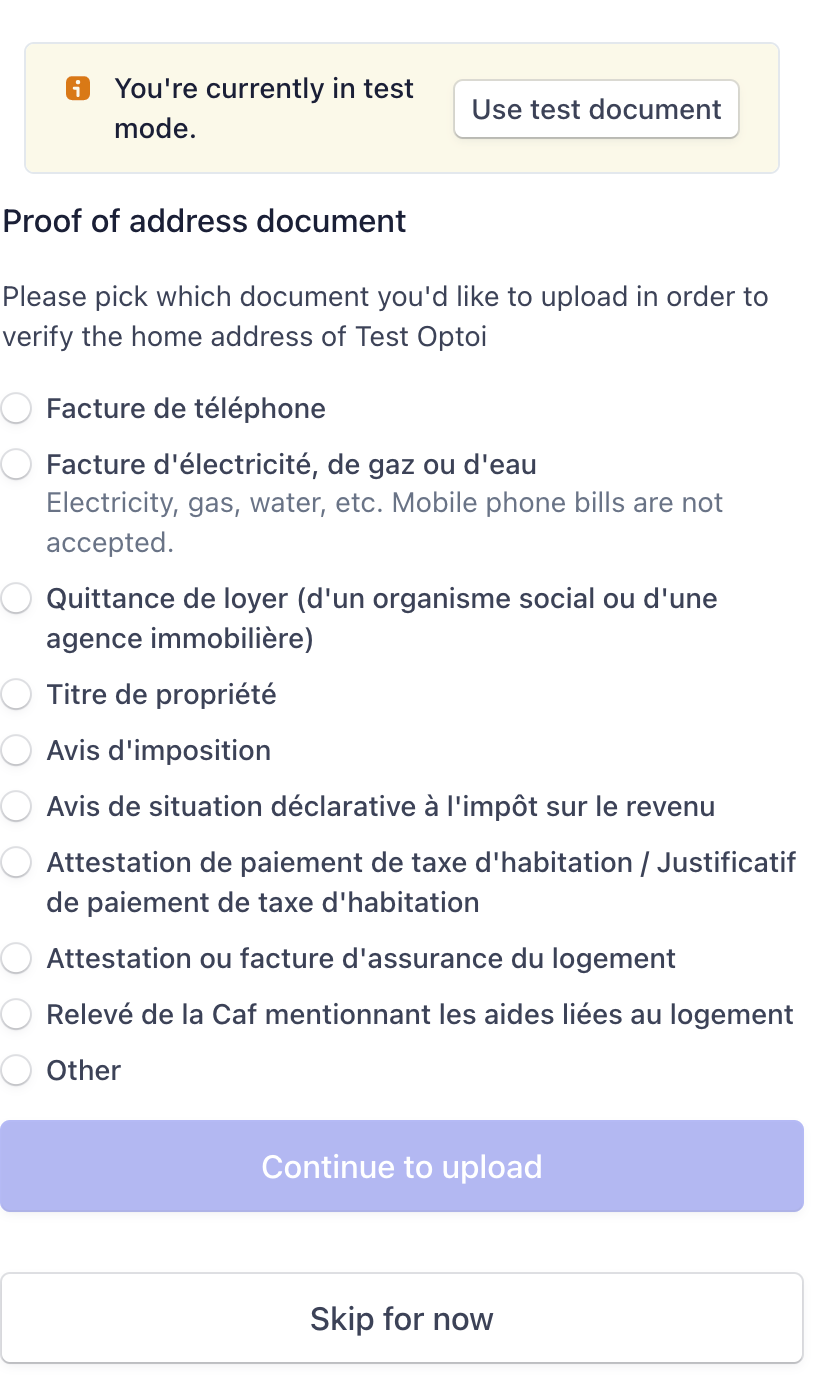 Workflow of Stripe’s identity verification for users registered in France