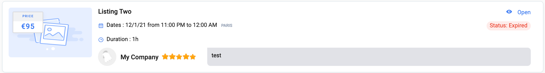 An overview of the listing (figure 4) related to this booking: