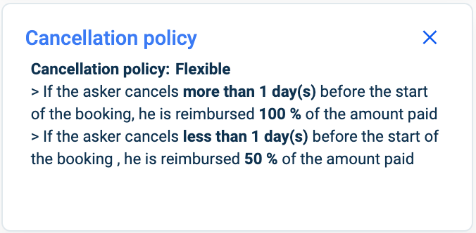 As an asker, bookings can be cancelled or mediated (if applicable, see related documentation: Mediation management dashboard (Mediation feature).