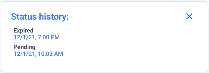The status history block (figure 9.1) located under the offeror card displays the evolution of the booking’s status. It is sorted from the most recent to the oldest status.