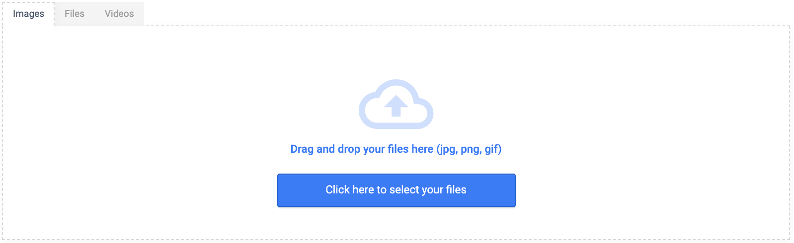 To add elements, the user either clicks “Click here to select your files” or drags and drops files in the dedicated block (figure 16.2).