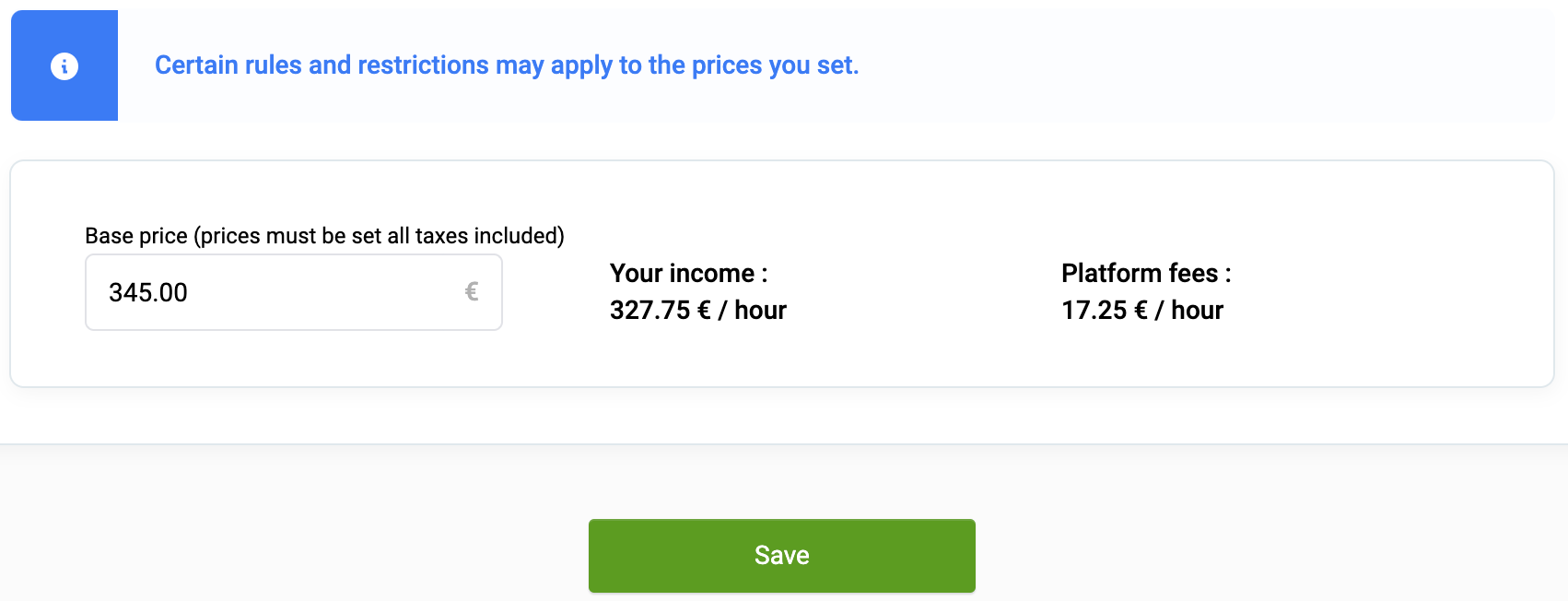 The base price represents the initial price assigned when a listing is published. This price is visible to users in the listing preview block. However, the final amount a user pays may differ due to potential seasonal pricing adjustments.