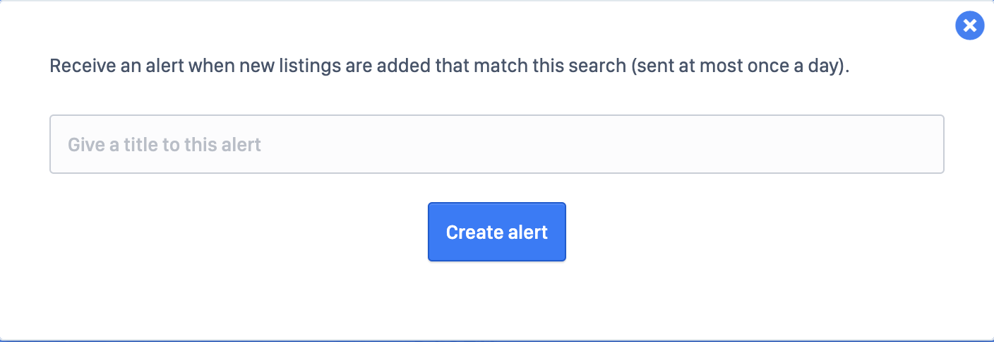 Clicking on the button will open a pop-up window that prompts the user to enter a title for this alert. To finalize alert creation, the user clicks “Create alert” (figure 1.3.2).