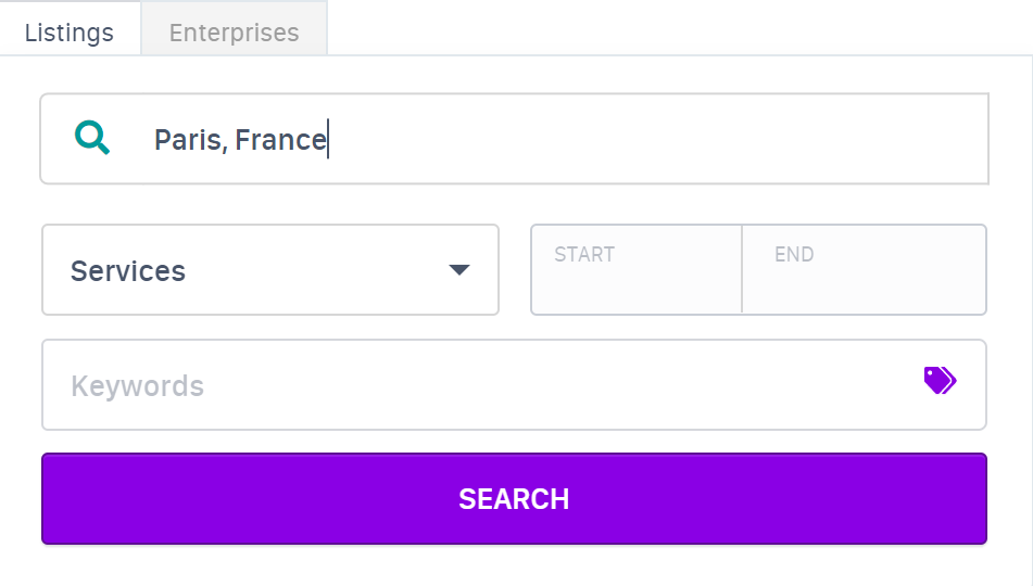 When several listings are offered in the same geographical area, users will see a numbered coloured circle indicating the number of listings available in this area (figure 1.1.2). The search becomes more precise as a user zooms in.