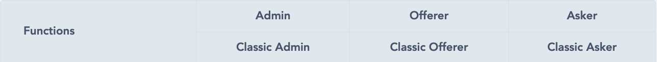 * The role type (figure 2) available on the platform: