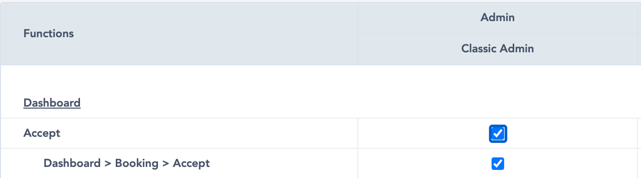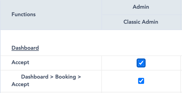 In other words: “*Role* can accept the booking from the dashboard”.