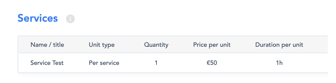 A service card is used to summarize the booked services (figure 6).