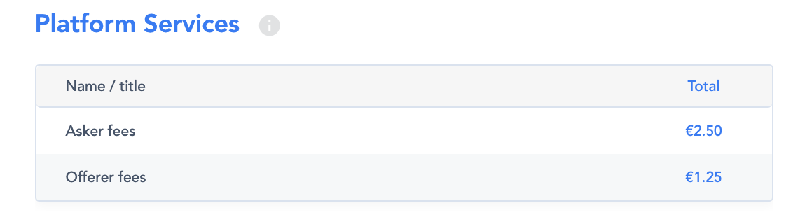 Platform fees = total asker fees + offerer fees