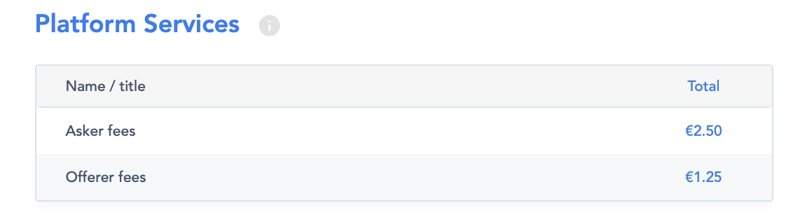 The platform services card (figure 7) shows in detail the fees charged by the platform