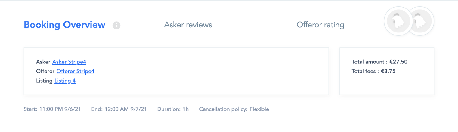 Asker fees: the asker paid fees for his booking