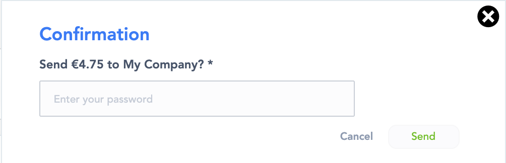 A modal will appear (figure 9) to fill in the payment password. Click “Send” to do the payment.
