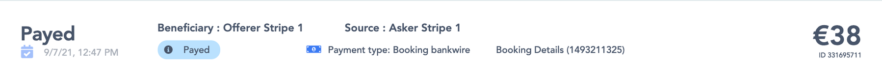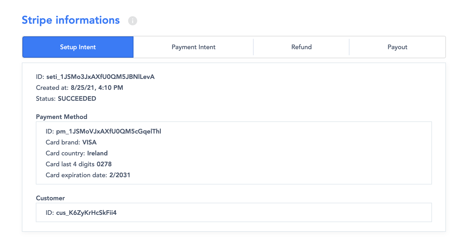 For each payment, super-administrators or administrators can see the PSP information (figure 7). Stripe is the example here.