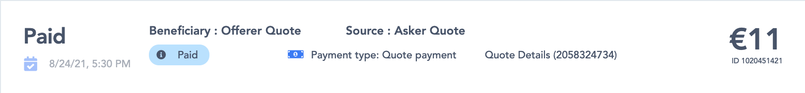 To update the payment status super-administrators or administrators have to pay the offerer. Click “Send x €” (figure 8) to perform the payment action.