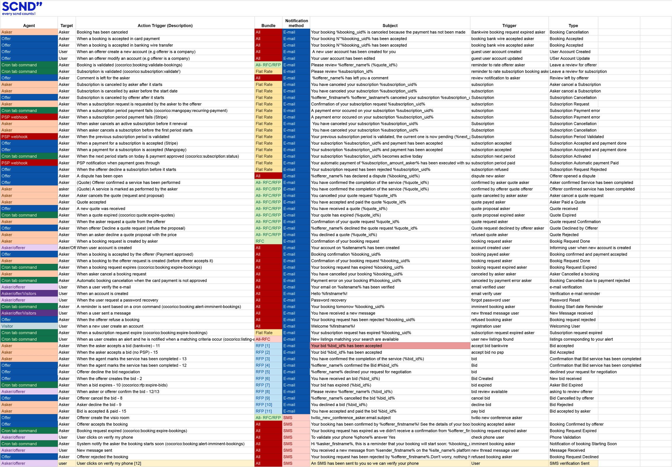 All the messages sent out of the platform are available in the table below.