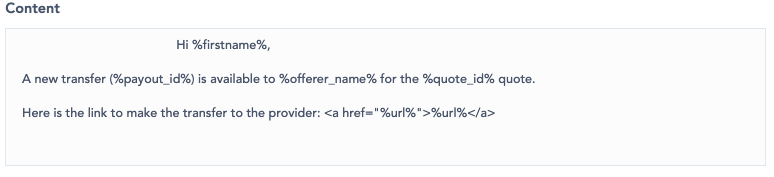 A new transfer ( %payout_id%) is available to %offerer_name% for the %quote_id% quote.