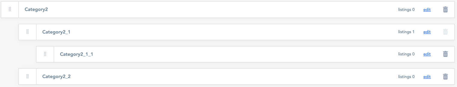 When a category is still used by at least one listing, the trach icon will have a light grey color.