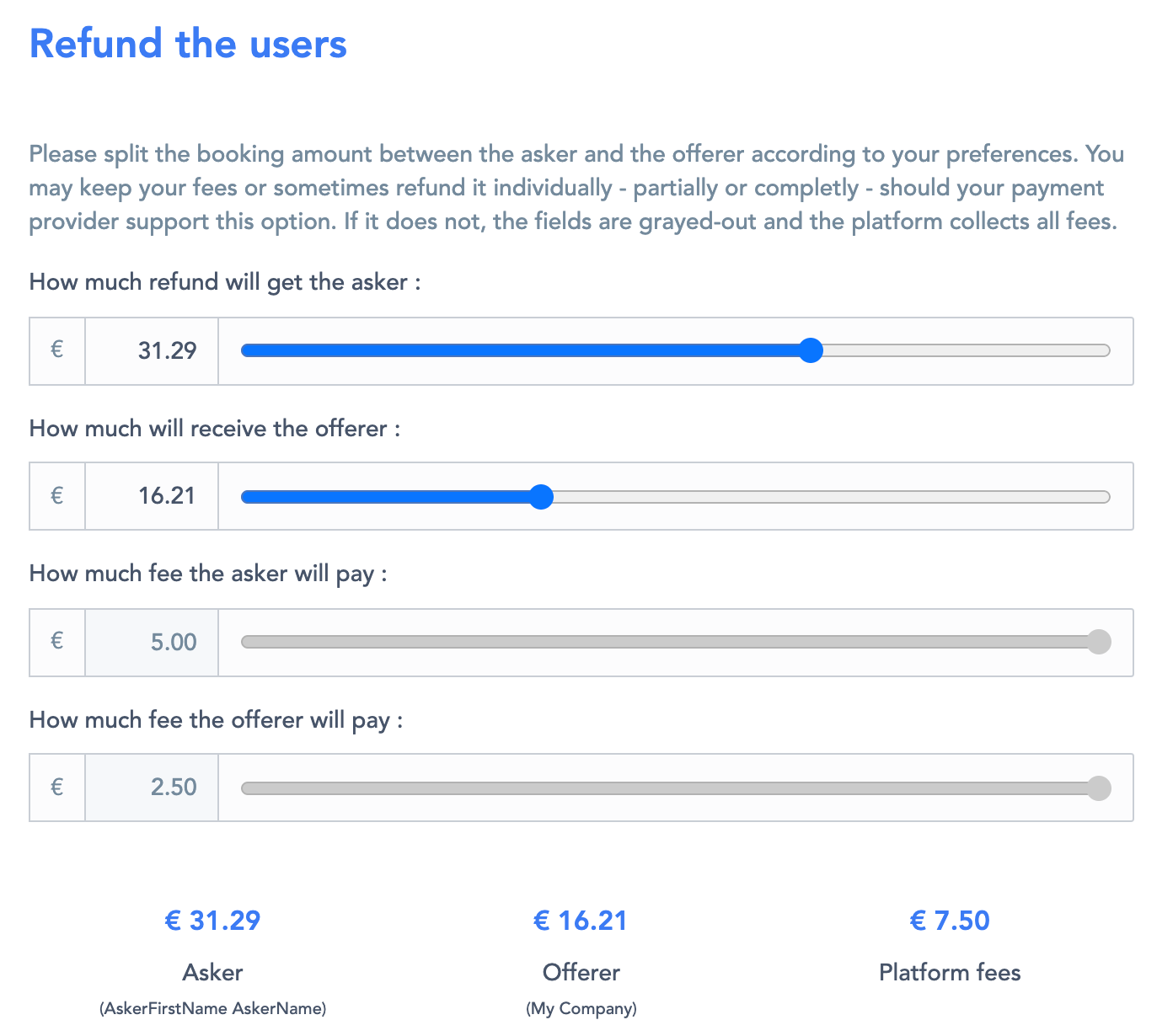 Sliding the buttons from left to right automatically updates the refund amount for the other user.