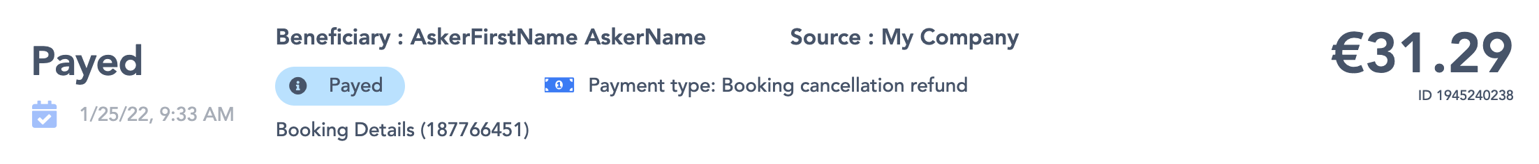 Path: SBO > Bookings > Payments > Payout