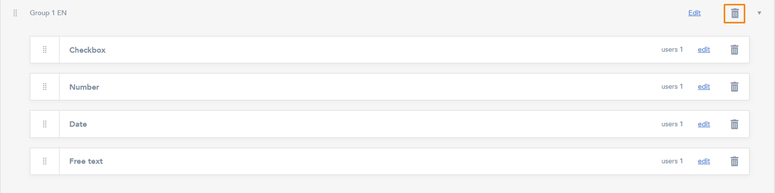 Delete a user attribute group by clicking the trash icon (figure 10).