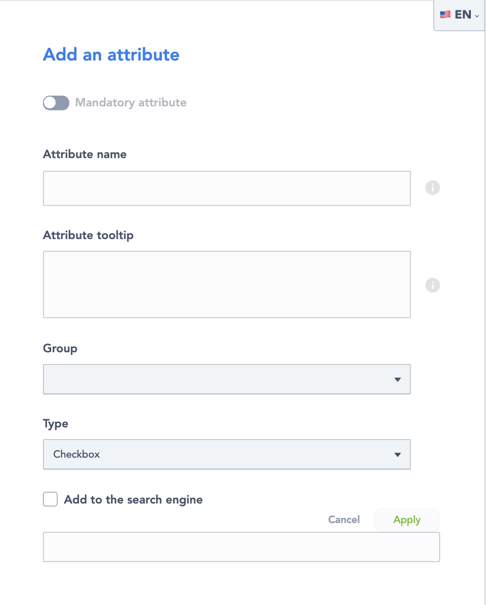“Add to the search engine” checkbox to show this attribute in the search results page filters.