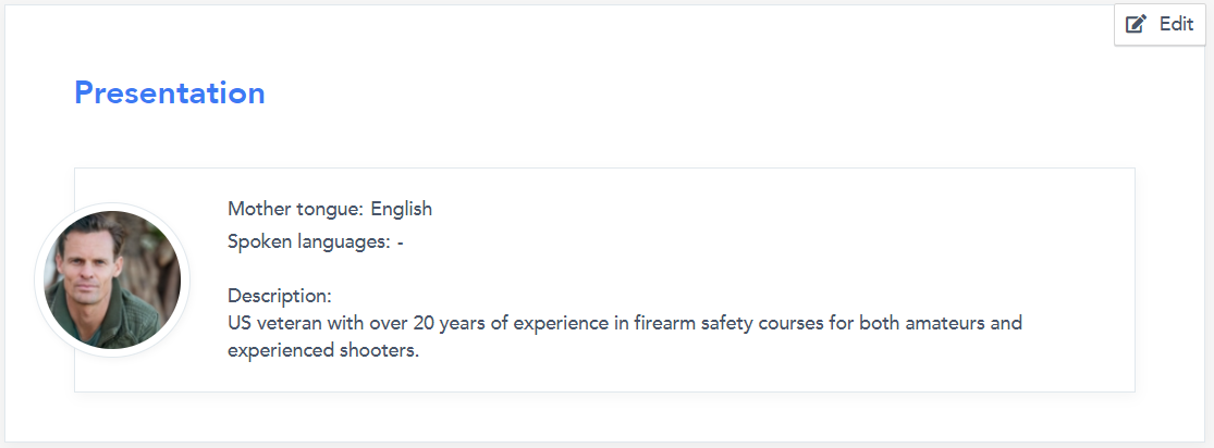 The presentation card (figure 5) allows operators to see the user’s picture, mother tongue and other spoken languages.