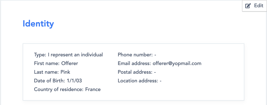 Postal address: corresponds to the billing address, and the address used for KYC / KYB purposes
