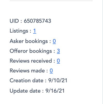 If a Payment Service Provider (PSP) is configured on your platform, several technical snippets will be displayed here. Information typically includes user UID on the PSP side and statuses: